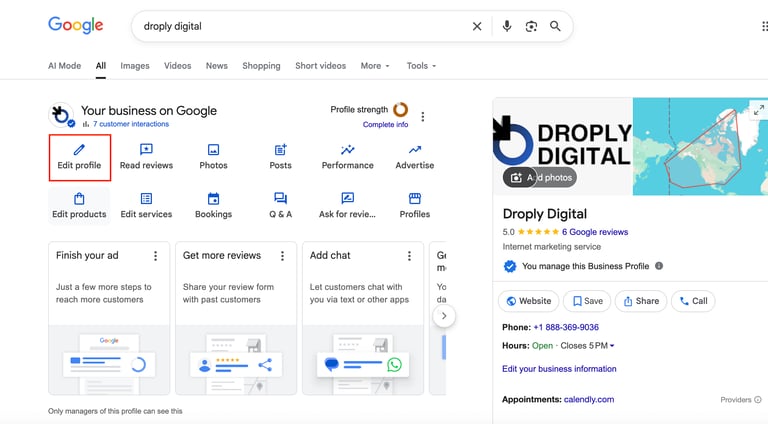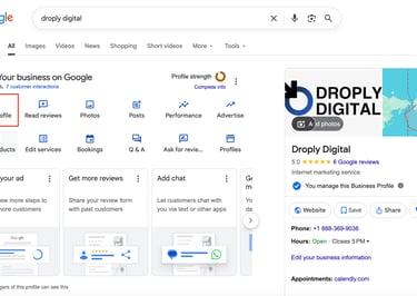 If you're logged into the correct Google account, your Business Profile panel will appear.